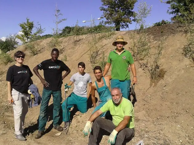 Alumnes de segon curs del grau de Jardineria de l’Institut Mollerussa han enjardinat un talús al parc del davant de la sala de vetlla del Palau d’Anglesola, els alumnes han plantat un centenar d’arbusts de l’espècie anomenada espí groc.