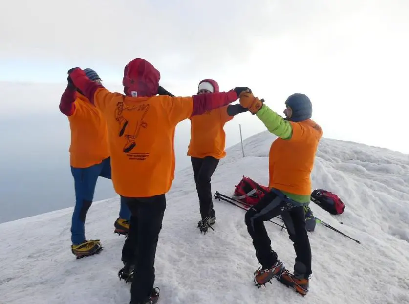 Quatre membres de l'agrupació sardanista celebren el 50è aniversari de l'entitat amb una ballada a 5.137 metres d'altura