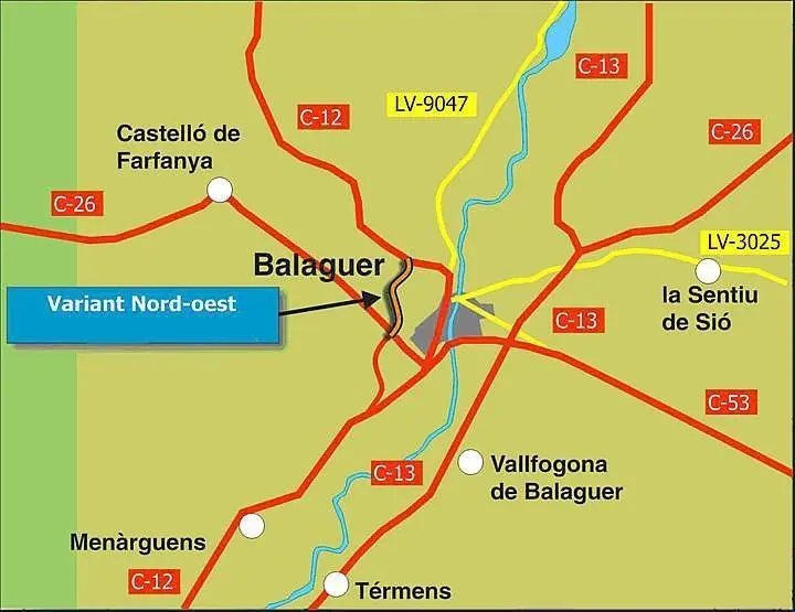 La variant nord-oest de Balaguer és una infraestructura llargament reclamada a la capital de la Noguera. En aquest sentit, el Departament de Política Territorial i Obres Públiques va adjudicar els treballs a finals del 2010 a l'empresa ACSA-Sorigué per 3,5 milions d'euros. La variant permetrà als vehicles que es dirigeixen cap a les Avellanes o Àger evitar el pas per l'interior del nucli urbà de Balaguer, amb la qual cosa es reduirà el trànsit en algunes vies com ara el carrer Urgell, el pont de Sant Miquel o el Passeig dels Erals.