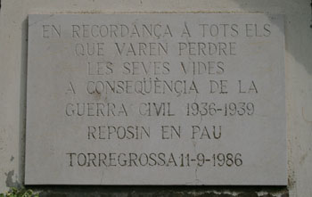 El matí d'aquest dimarts els operaris de l'empresa d'enderrocs desmotaven el monòlit dedicat als caiguts per la Pàtria i per Déu, segons constava en la inscripció, dels jardins municipals de Torregrossa, una primera fase de l'acord municipal a la que van arribar tots els grups polítics el passat mes de desembre.